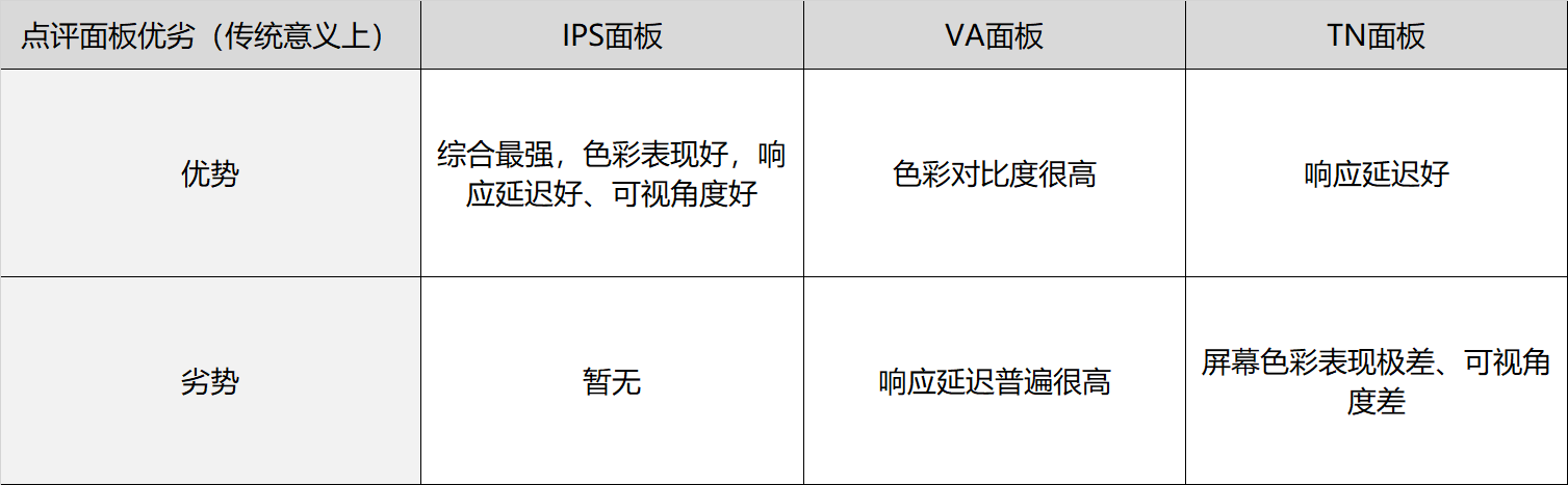 TN面板以前在响应时间上表现更强,但色彩表现上差不少,所以现在一般可以不考虑了