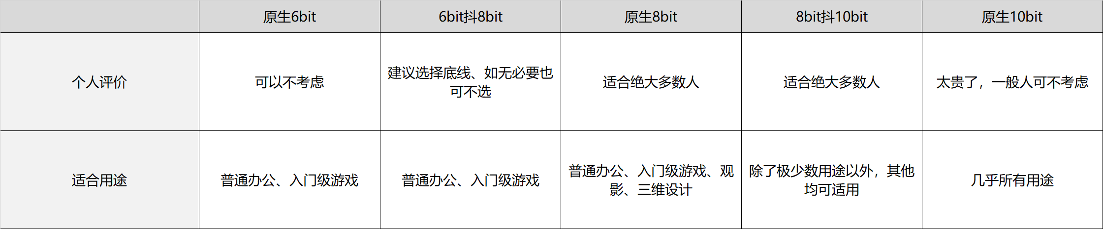 现在买显示器一般建议至少6抖8的屏幕,只要预算不是很紧张都建议考虑买原生8bit或者8抖10的显示器